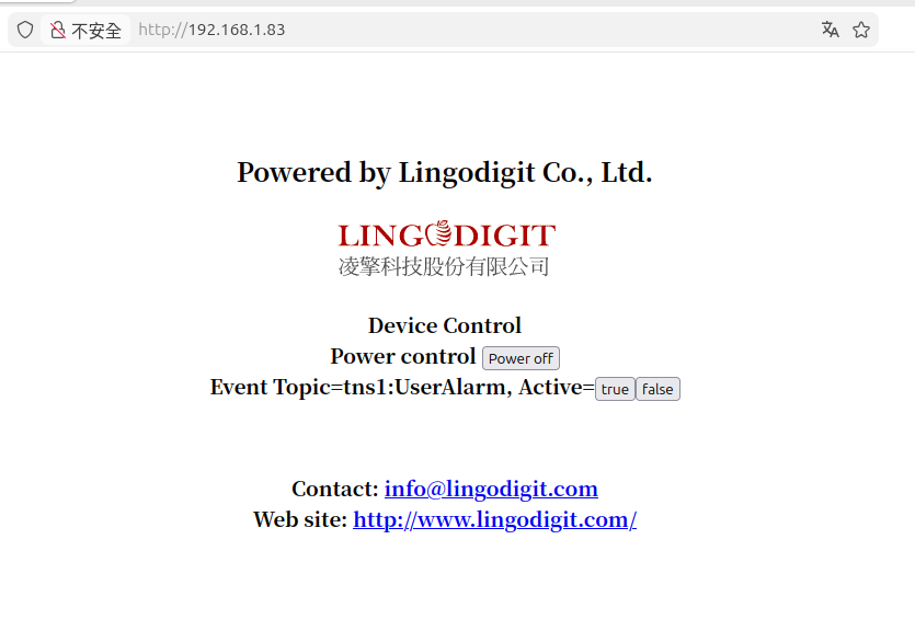 After LingoVM booting you can visit it's Web Page and control via an ONVIF client device or software