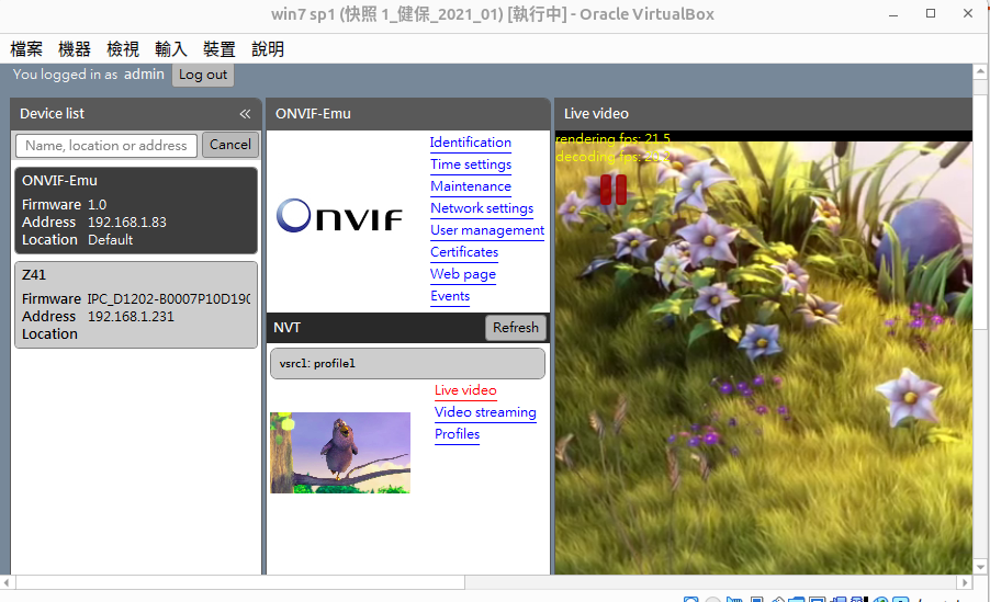 LingoVM is an ONVIF-compliant IP CAM Emulator, a small Linux system for VirtualBox image.